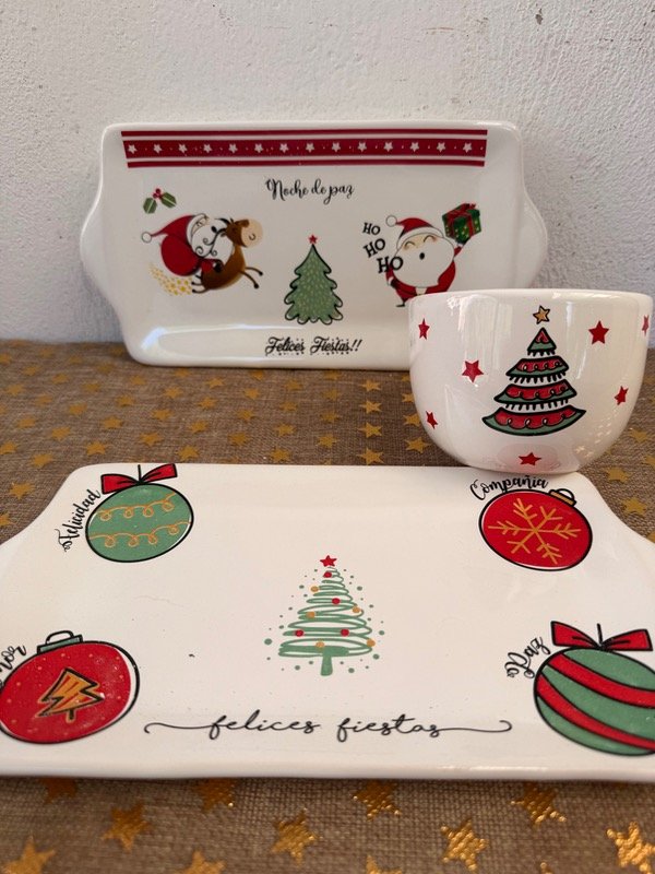 Incluye dos bandejas y un cuenco. Motivo ovalado o cuadrado