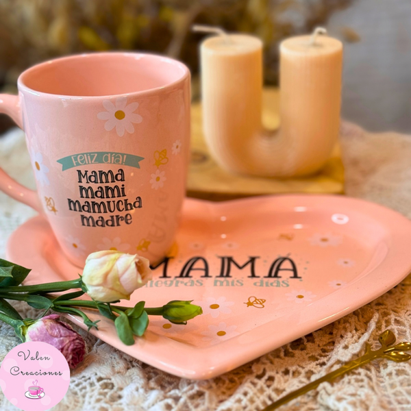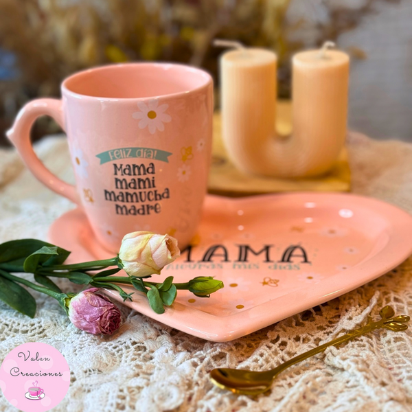 Taza, bandeja corazón y cucharita