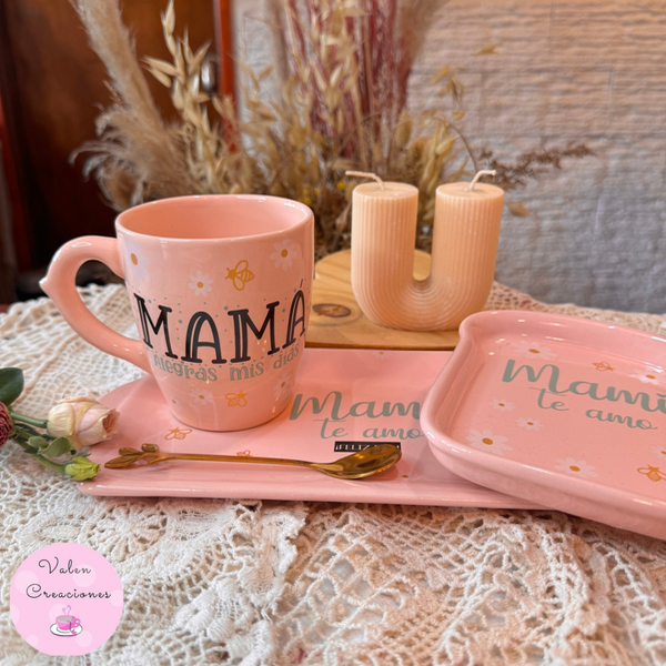 Incluye taza, bandejita rectangular, plato tostada y cucharita