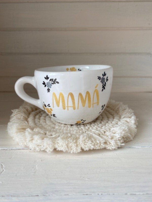 Tazón mamá en dorado con flores