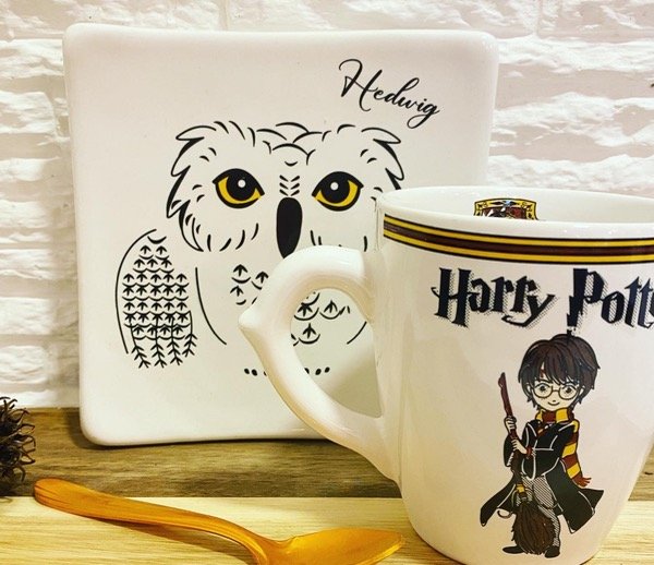 Taza y plato cuadrado, todo de cerámica. No incluye cucharita