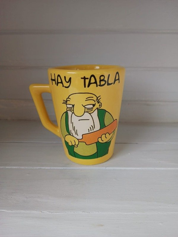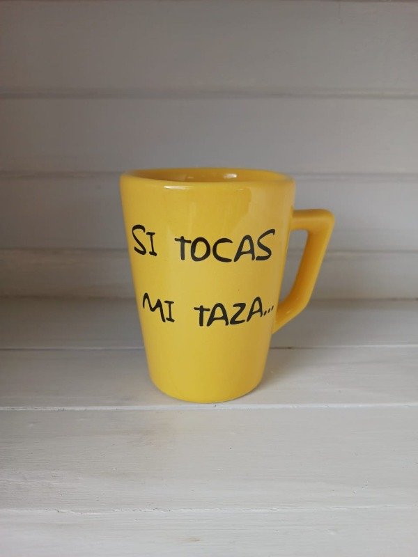 TAZA EN CERÁMICA AMARILLA "SI TOCAS MI TAZA, HAY TABLA"